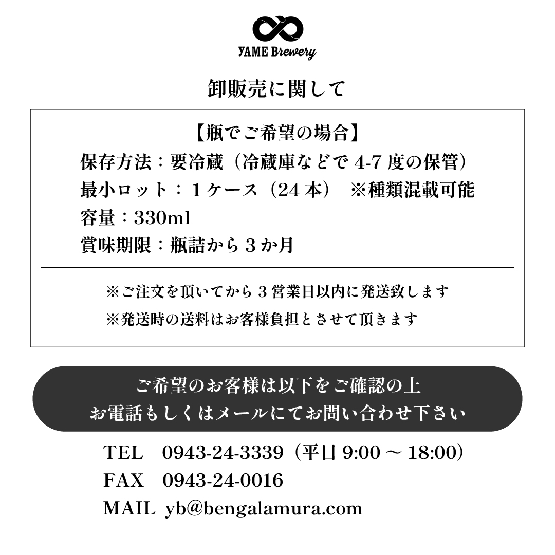 瓶・樽ともに卸販売可能です!